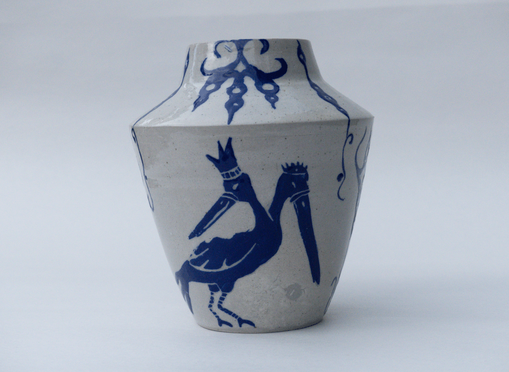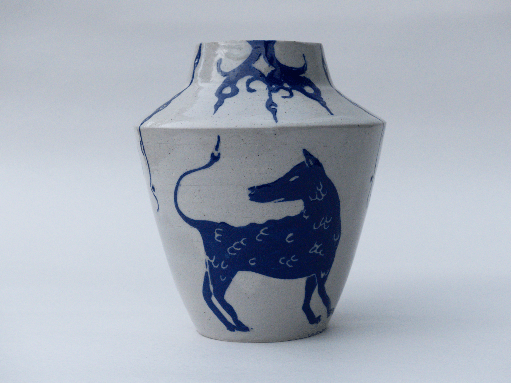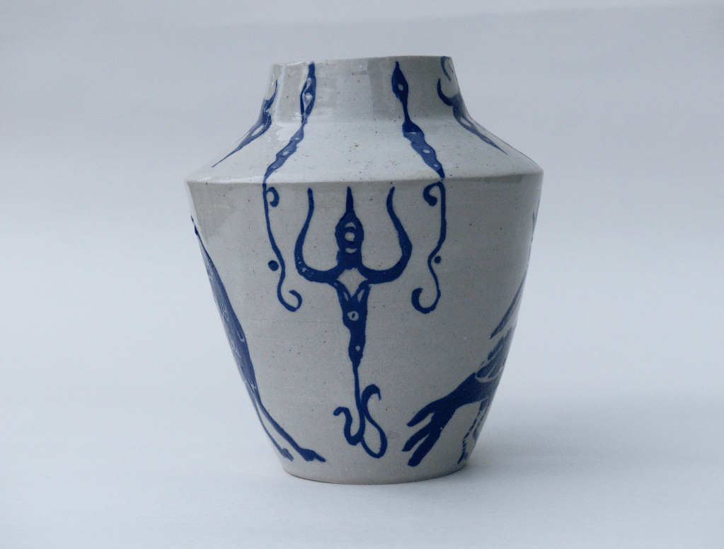 v Vase décoré à l’engobe, sgrafitto. Résultat du stage de décor avec Caroline Trimbur au PCN.