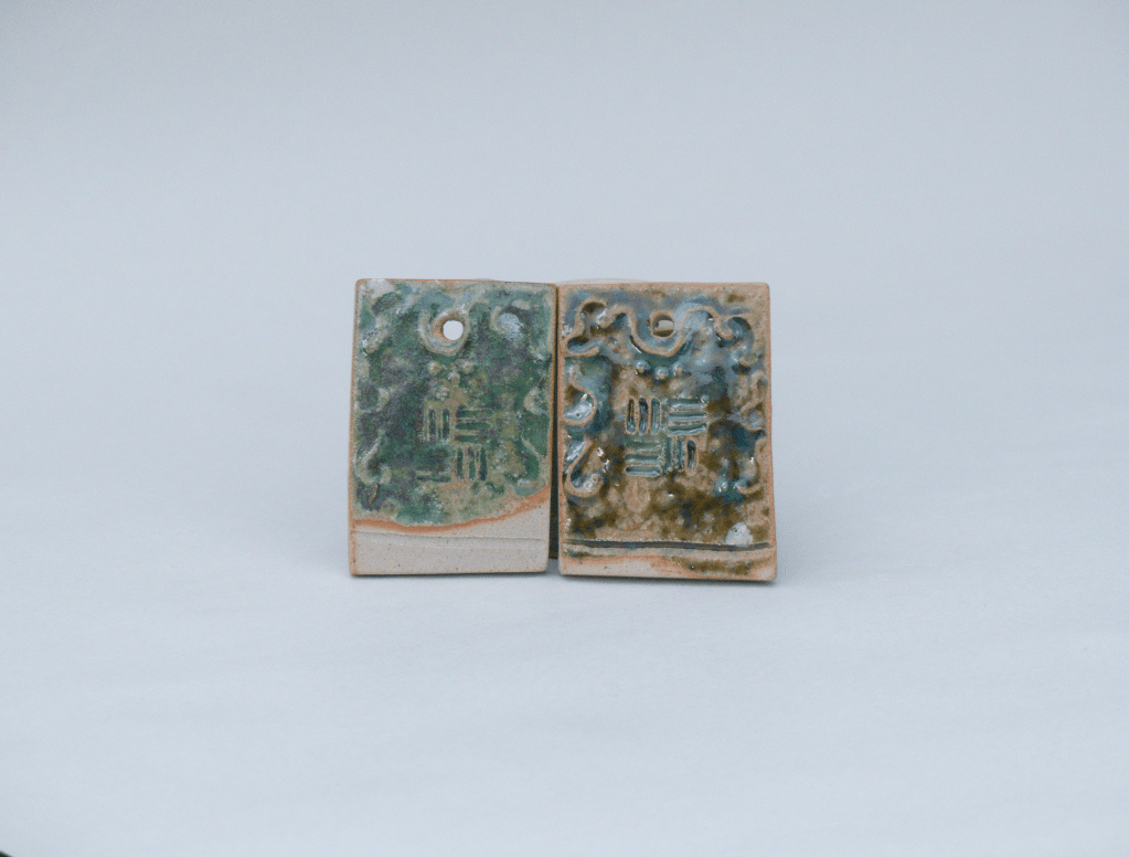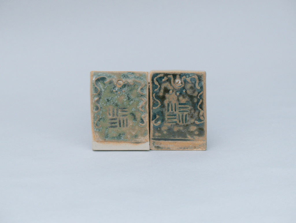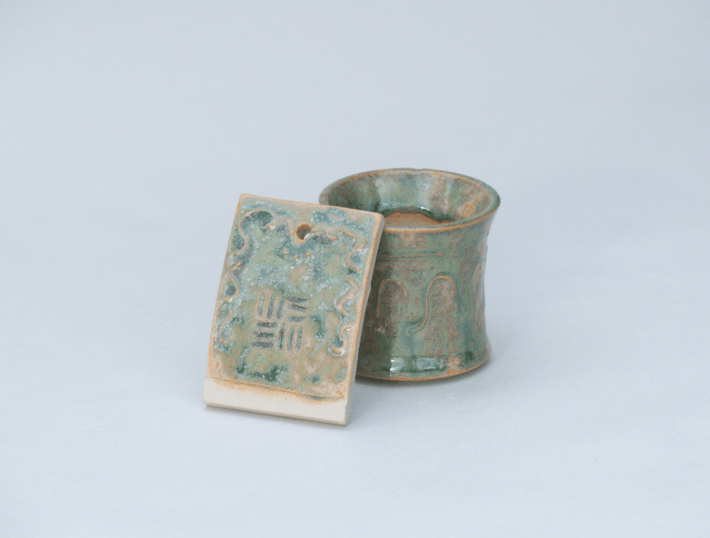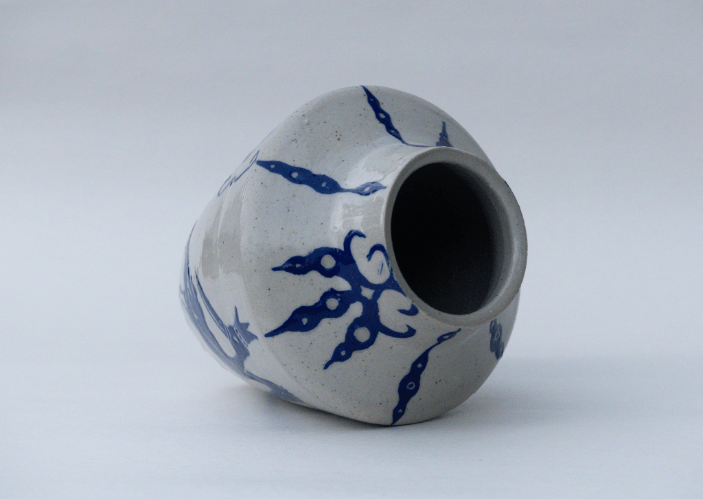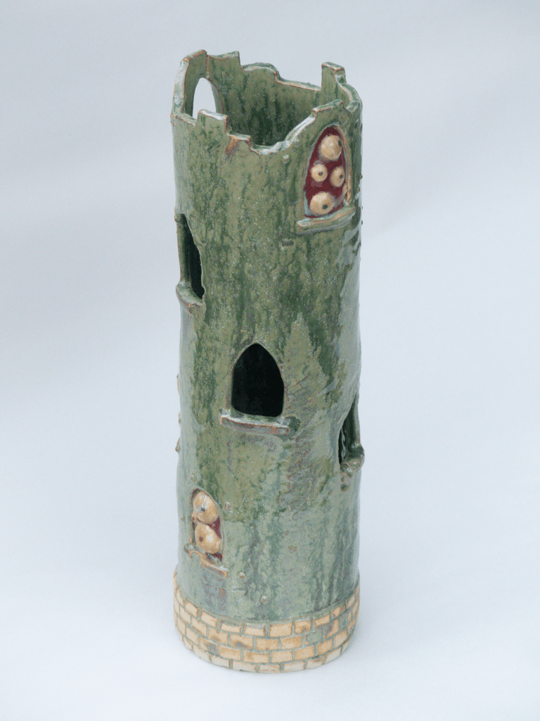 v Sculpture exposée lors du Weekend Céramique de Beuzeville 2026. Principalement de l’émail de cendre de lavande, cuit en oxydation. J’ai pu voir que cette recette est assez stable. Il coule sur lui-même mais ne dépasse pas la zone d’application. Cristalisation ou saturation ?