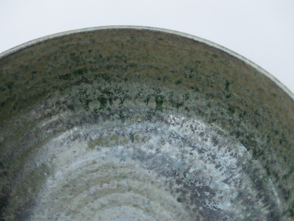 v Tests d’émaux de cendre au rutile et au cuivre. Recette test de Capucine Pageron. 1260°C